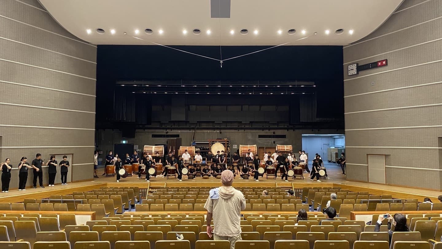 部活動の発表会を文化ホールで行いました。本番直前の打ち合わせの様子。