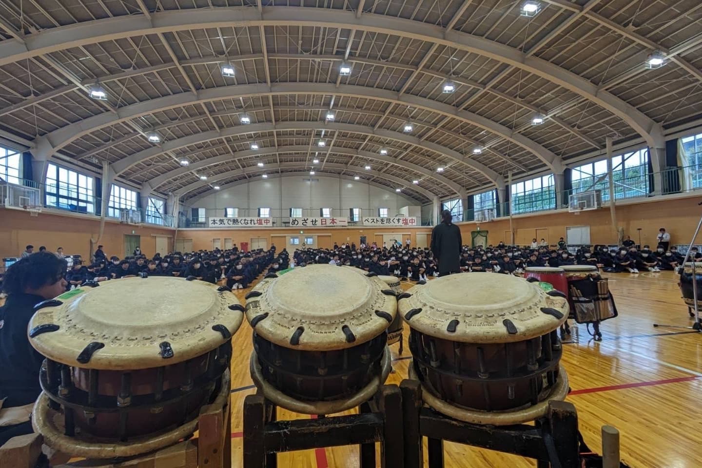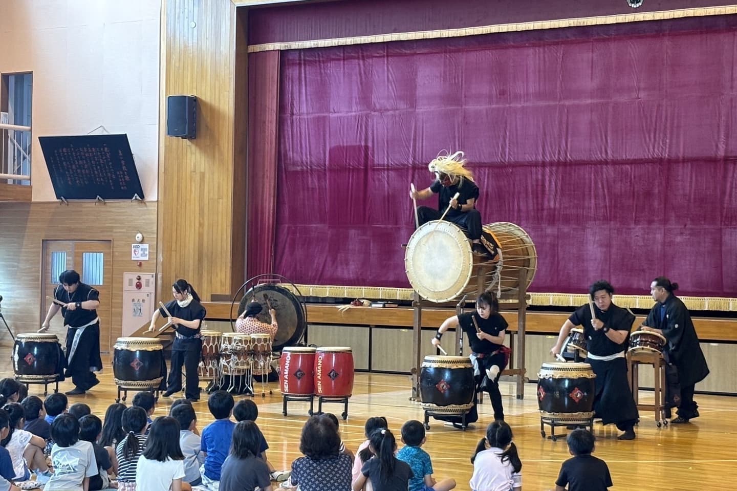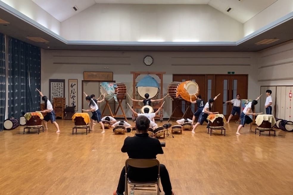 授業の一環として日本の伝統文化である和太鼓演奏を披露しました。